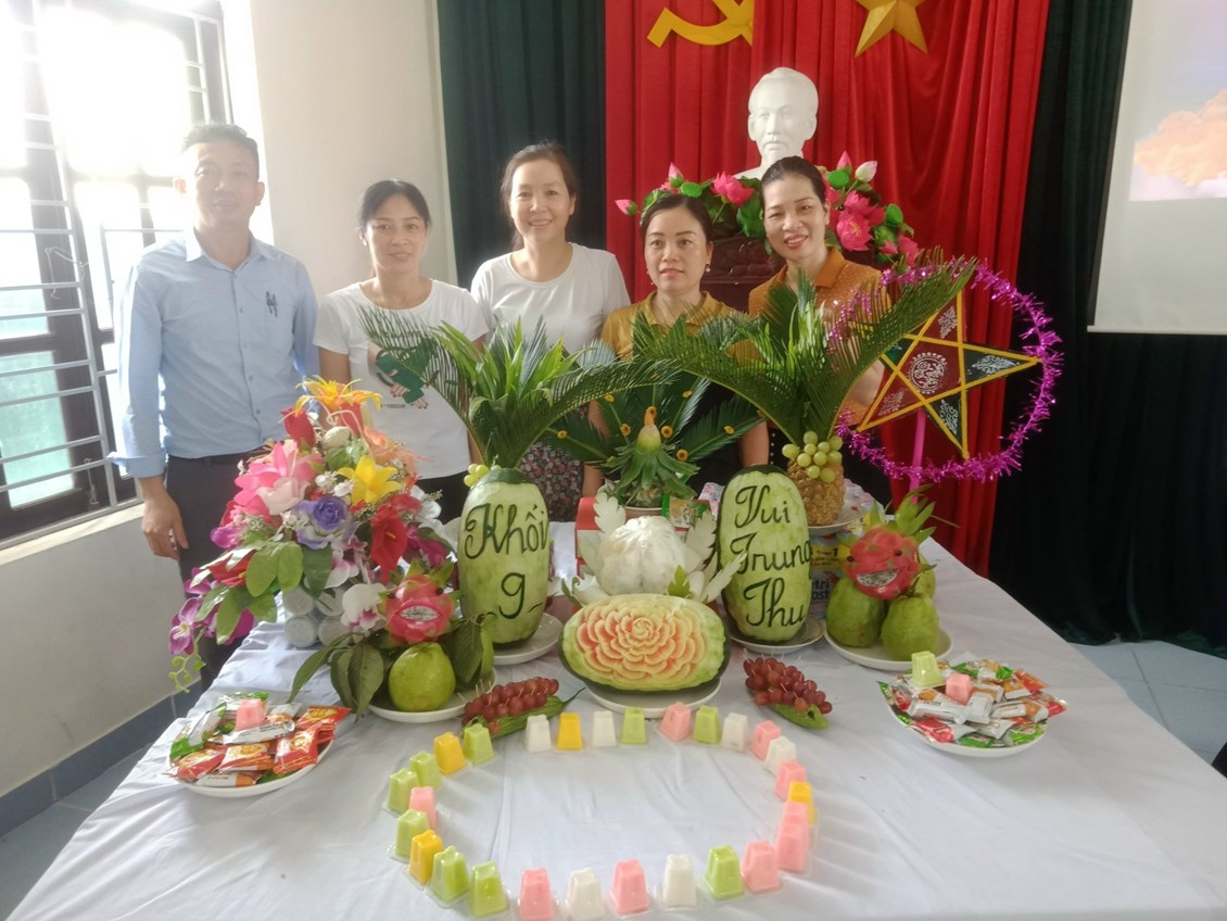 Những mẫm cỗ dự thi của các lớp như một bức tranh đa dạng với đủ những màu sắc rực rỡ. Khi thì là trái hồng ngâm đỏ mọng được trang trí trông như những chiếc đèn lồng, khi thì là quả bưởi chín vàng được khéo léo cắt tỉa thành chiếc đèn hoa đăng xinh xắn, khi thì là những củ hành tây qua bàn tay mẹ vụt biến thành lọ hoa sen mùa thu tỏa ngát hương…. Mâm cỗ của khối lớp nào cũng thật đẹp mắt nên phải khó khăn lắm, Ban giám khảo mới có thể lựa chọn ra những mâm cỗ đặc sắc nhất của các khối lớp để trao giải.