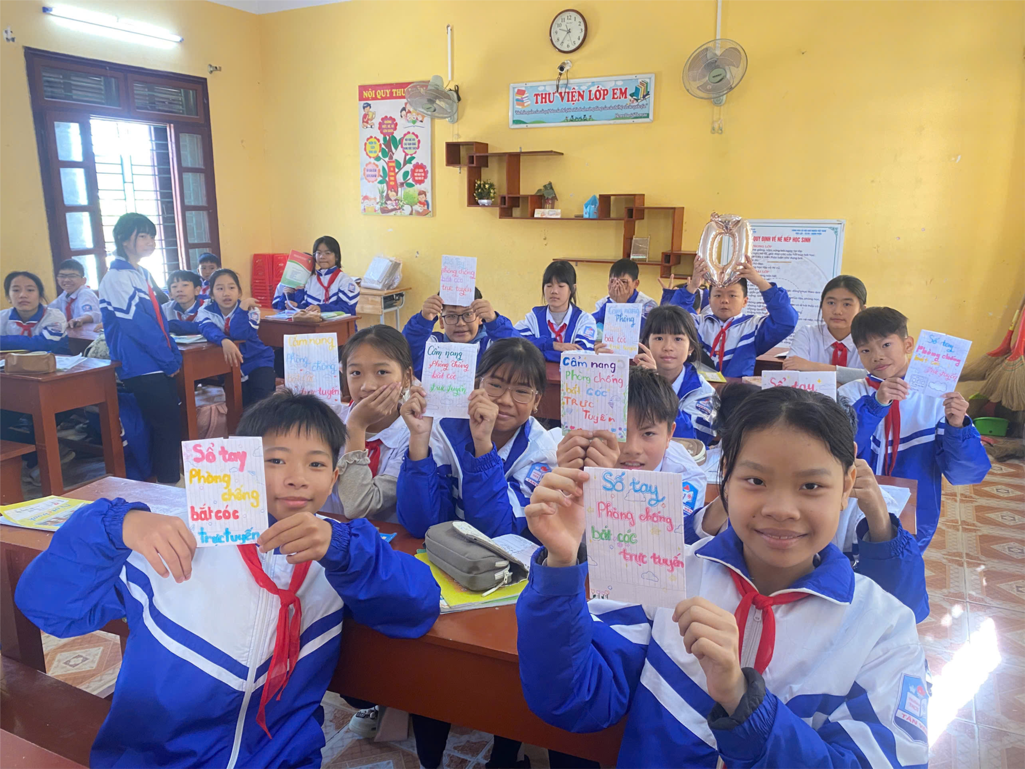 Cô Lê Thị Quý, Tổng phụ trách Đội chia sẻ: "Nhà trường rất bất ngờ trước sự sáng tạo và hiểu biết của các em. Qua hoạt động này, các em không chỉ học được kỹ năng tự bảo vệ mình mà còn thể hiện trách nhiệm với cộng đồng trong việc xây dựng môi trường mạng an toàn."