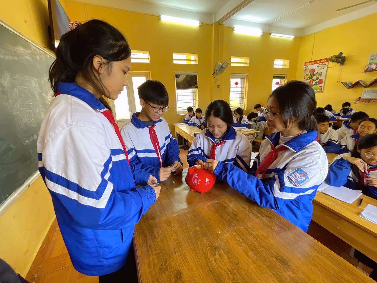 Thực hiện kế hoạch 257/CVLN-HCTĐ-SGDDT-ĐTH về việc phát động cuộc vận động Góp những đồng tiền lẻ vì nghĩa lớn - tặng quà đầu xuân giúp bạn nghèo và nạn nhân chất độc da cam xuân ẤT Tỵ 2025. Đội viên Liên đội THCS Tân Viên sôi nổi tham gia.