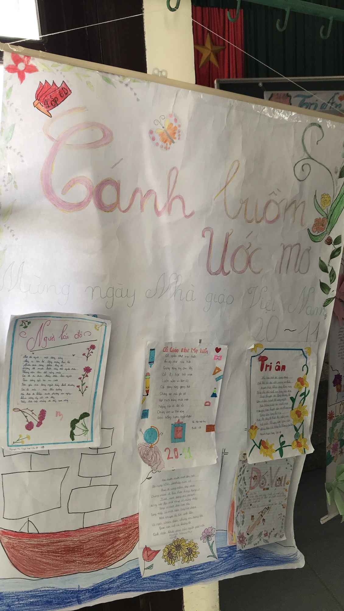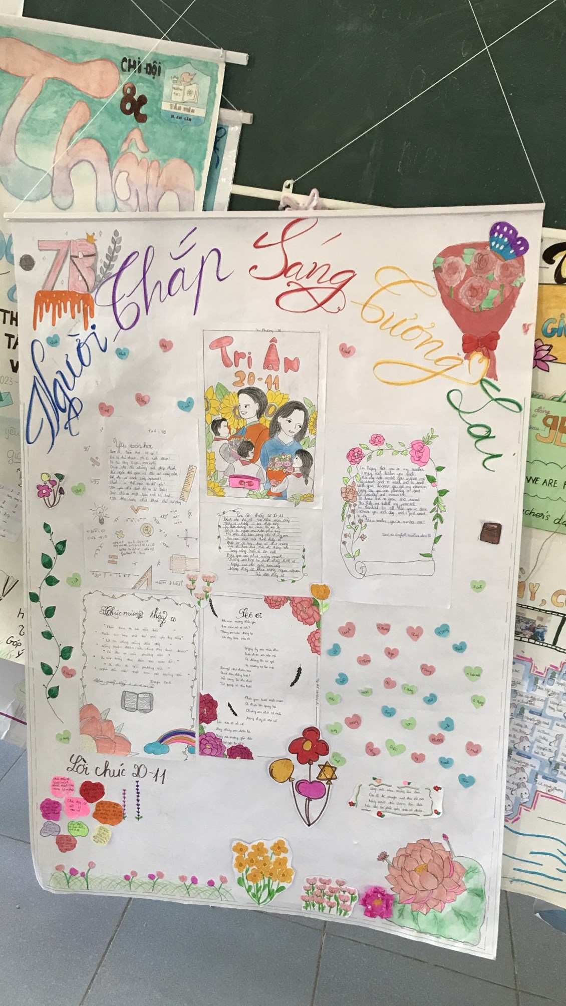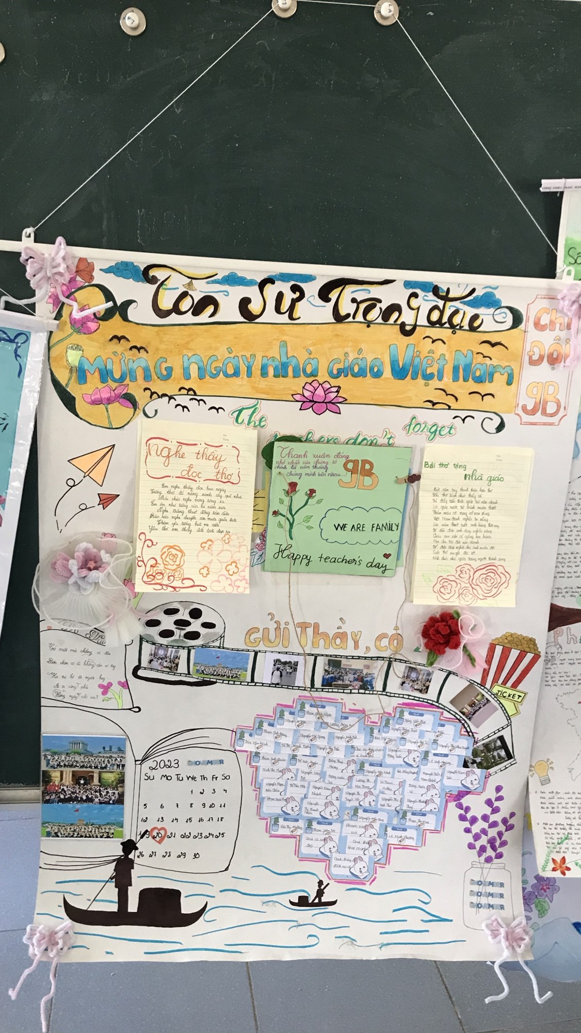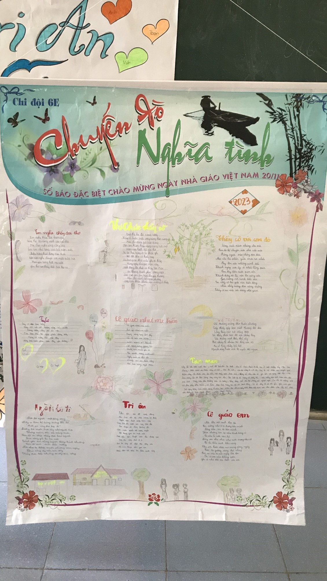 2. Tổ chức thi báo tường chủ đề chào mừng ngày Nhà giáo Việt Nam 20/11.Kết quả lớp 9B,8A,7D,6C đạt giải nhất. Lớp 9A,8B,7E,6A đạt giải nhì. Các lớp còn lại đạt giải Ba.