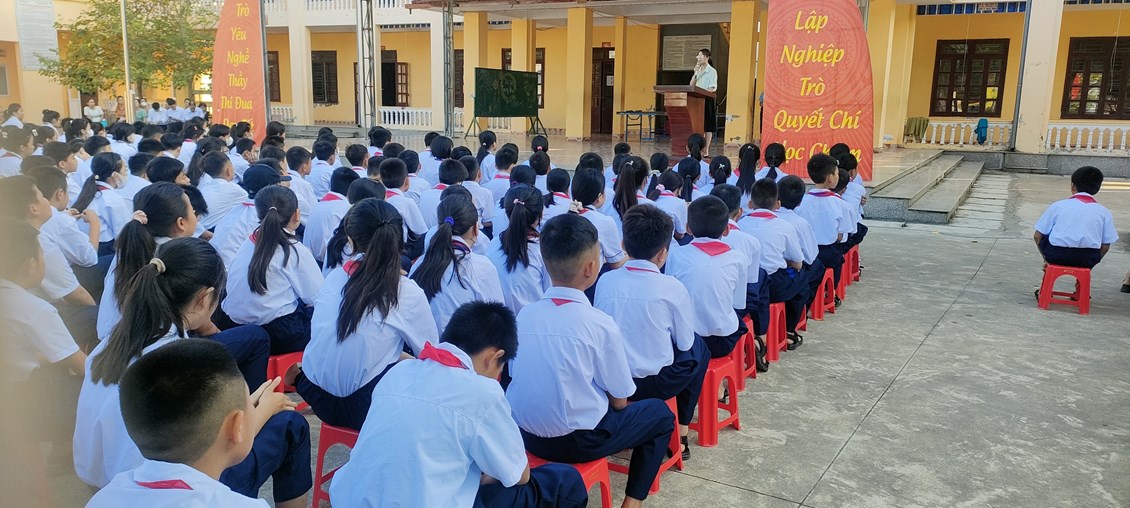 Tại buổi Sinh hoạt dưới cờ, Liên đội đánh giá tổng kết công tác của Liên đội trong tháng 9 chủ đề Truyền thống nhà trường. Sau 4 tuần học tập, các đội viên đã ổn định nề nếp, làm quen với ban mới, thực hiện các nội dung học tập. Qua theo dõi thi đua, xin chúc mững các chi đội vinh dự được nhận danh hiệu Chi đội 3 tốt: Chi đội 6B, chi đội 7D, 7E, 6C. Trong tháng 9, Liên đội đã tổ chức thành công chương trình Trung thu cho em; tuyên truyền về An toàn giao thông, đại hội các chi đội, Tuyên truyền về kĩ năng phòng cháy chữa cháy.