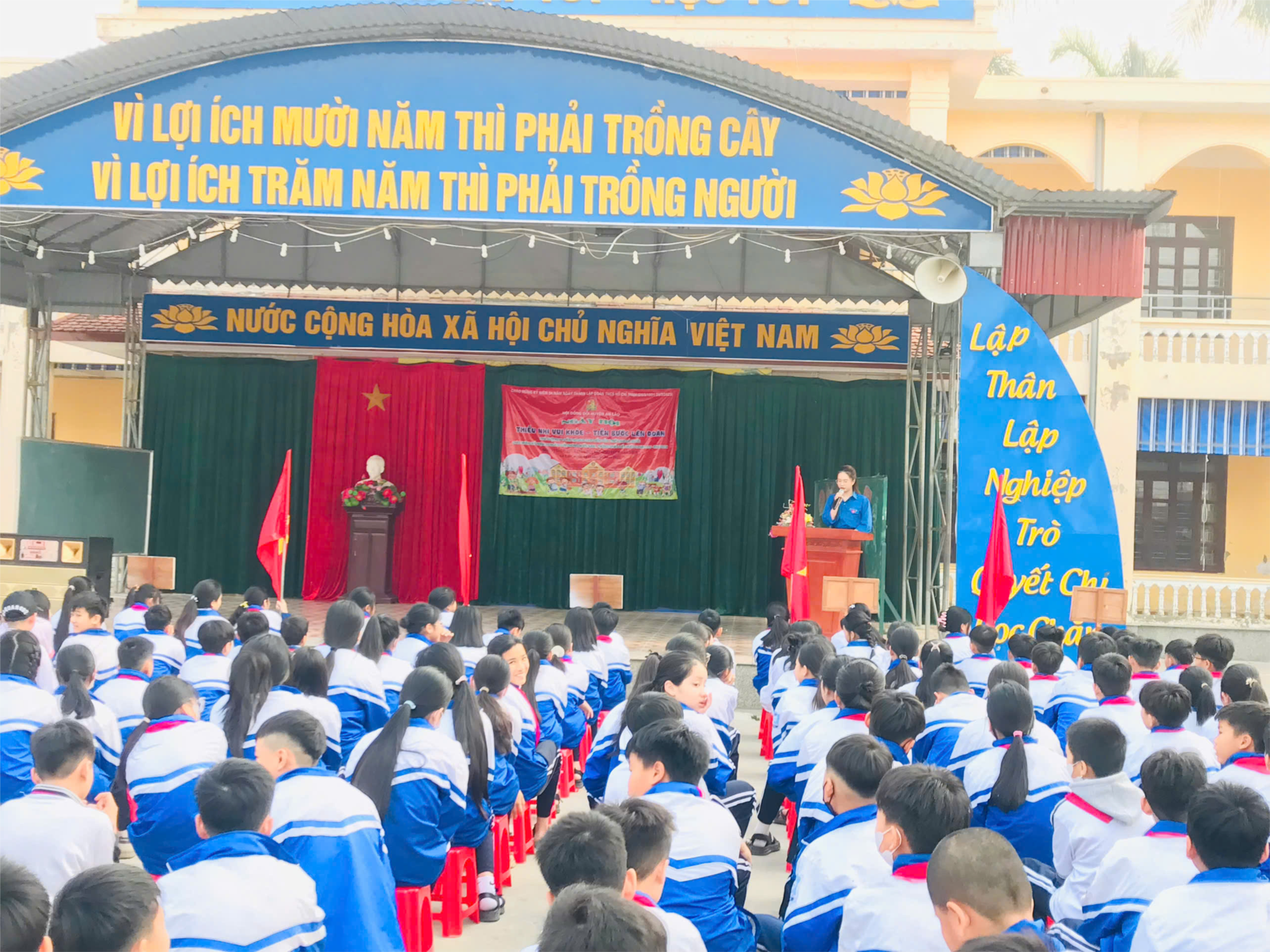 Về dự với ngày hội có thầy Phạm Văn Hải - Bí thư chi bộ, Hiệu trưởng nhà trường; thầy Vũ Văn Hùng - Phó hiệu trưởng nhà trường, cùng các thầy cô giáo trong Hội đồng sư phạm. Sau nghi lễ chào cờ trang nghiêm, thầy Phạm Văn Hải - Bí thư chi bộ đã phát biểu khai mạc ngày hội. Tiếp đó, đồng chí Trịnh Kim Chi - Bí thư Chi đoàn giáo viên đã ôn lại ý nghĩa lịch sử ngày thành lập Đoàn, giúp các em học sinh hiểu rõ hơn về truyền thống vẻ vang của tổ chức Đoàn TNCS Hồ Chí Minh.