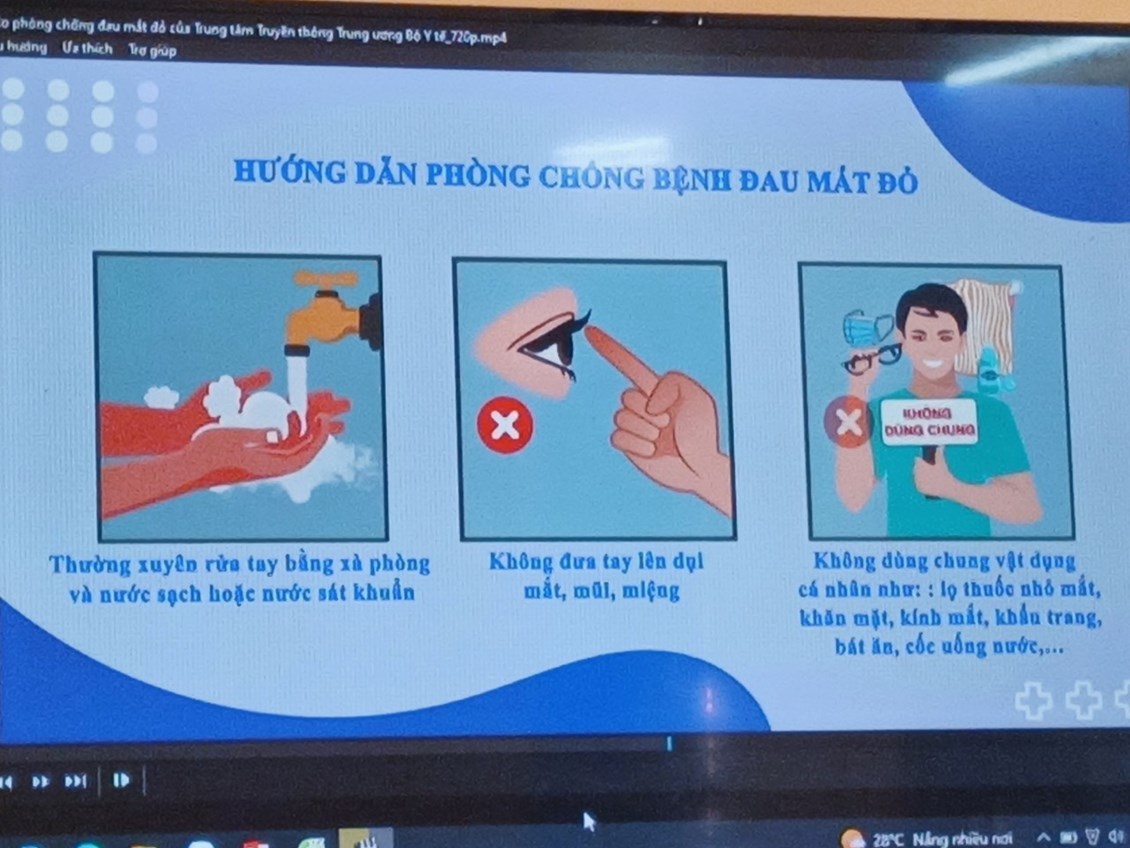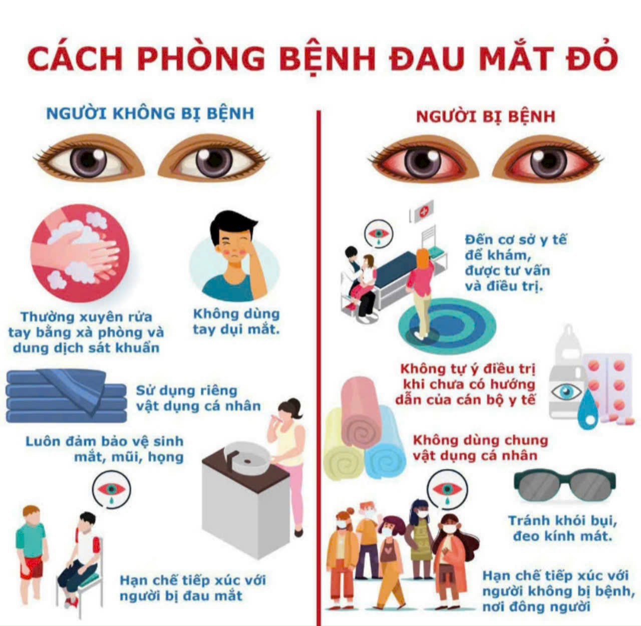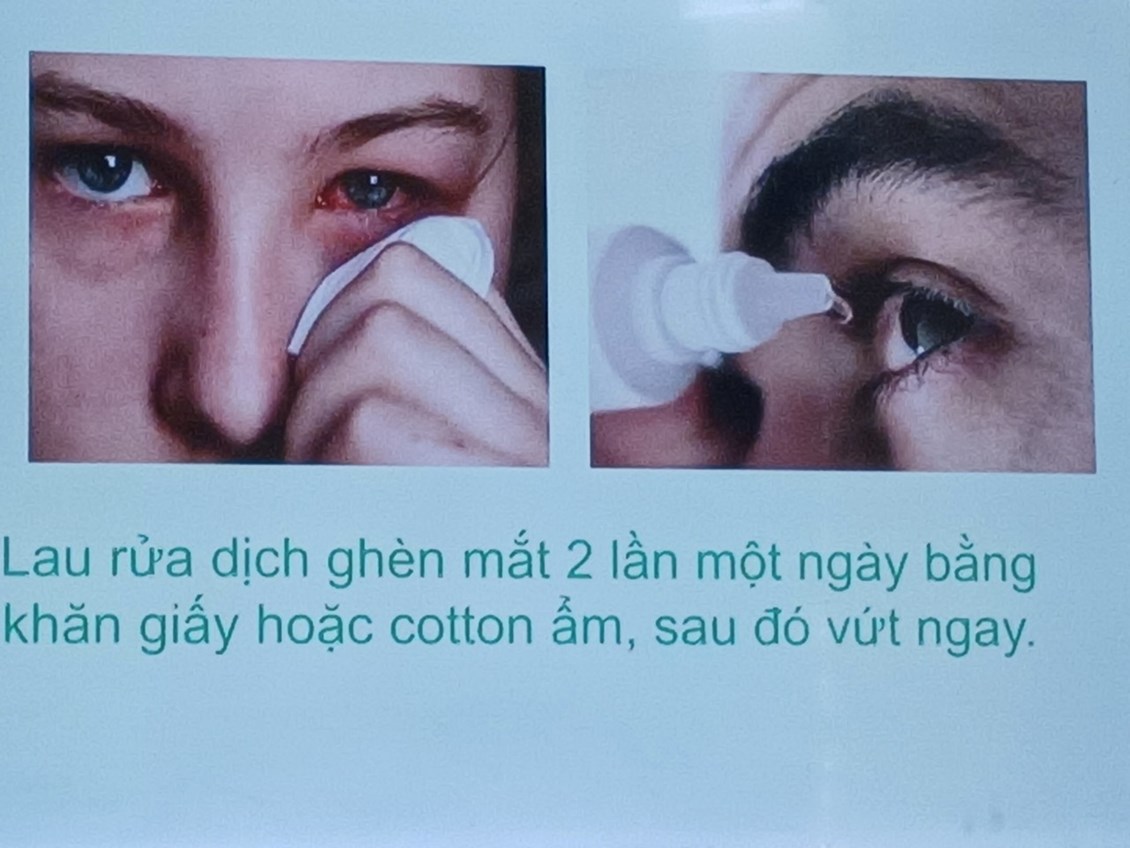 – Hạn chế tiếp xúc với bệnh nhân hoặc người nghi bị đau mắt đỏ