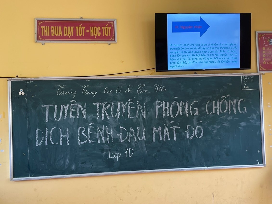 Trong thời gian gần đây, bệnh đau mắt đỏ đang diễn biến nhanh, lan rộng, Tại trường THCS Tân Viên đã có một số em học sinh bị đau mắt đỏ. Nhà trường đã tổ chức tuyên truyền đến PH và các em học sinh để phòng trách bệnh đau mắt đỏ.