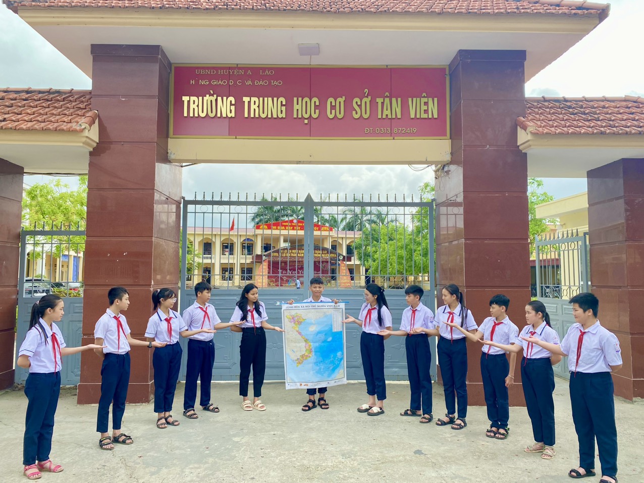 Với mục đích nhằm giáo dục lòng yêu nước, tự hào về toàn vẹn lãnh thổ trong mỗi người dân Việt Nam, thế hệ trẻ nói chung và các em học sinh nói riêng. Sáng 8/4/2024, Liên đội THCS Tân Viên triển khai cuộc tuyên truyền lịch sử “Tự hào non sông một dải” với nội dung thực hiện treo bản đồ Việt Nam tại nơi làm việc, lớp học…khẳng định chủ quyền, toàn vẹn lãnh thổ.