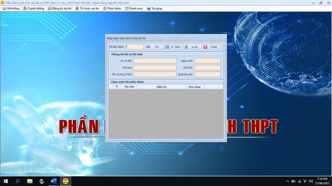 -Phần mềm Tuyển sinh vào lớp 10 THPT.