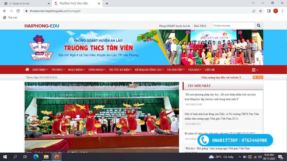 -Triển khai cổng thông tin điện tử ngành thcstanvien.haiphong.edu.vn