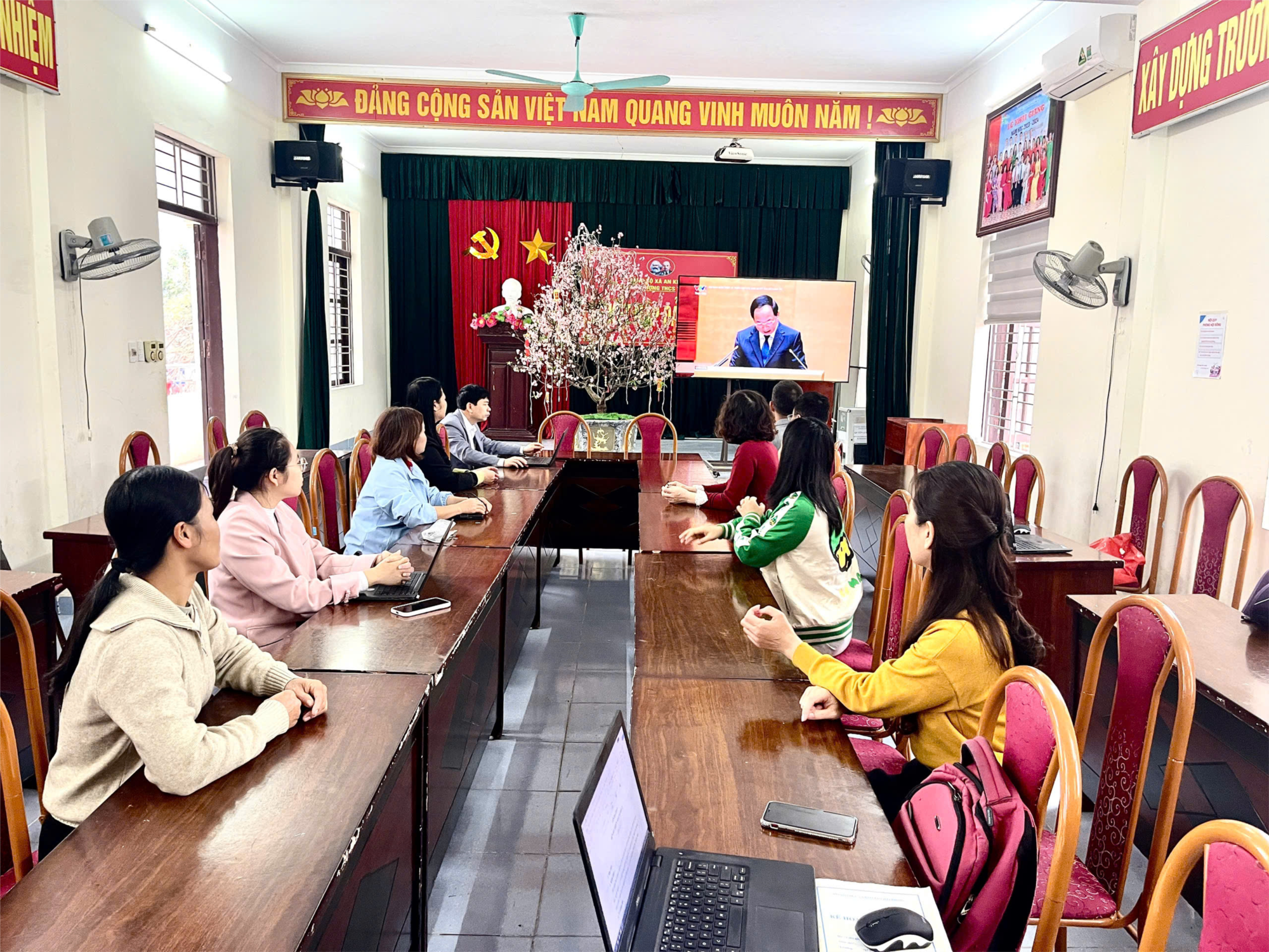 Tham dự hoạt động điểm cầu tại hội trường nhà trường có đồng chí Phạm Văn Hải – Bí thư chi bộ, Hiệu trưởng nhà trường; đồng chí Vũ Văn Hùng – Phó hiệu trưởng nhà trường cùng 100% cán bộ, giáo viên trong trường. Tập thể nhà trường đã tập trung lắng nghe, theo dõi xuyên suốt các nội dung của hội nghị trực tuyến diễn ra từ 08h00' đến 11h00'.