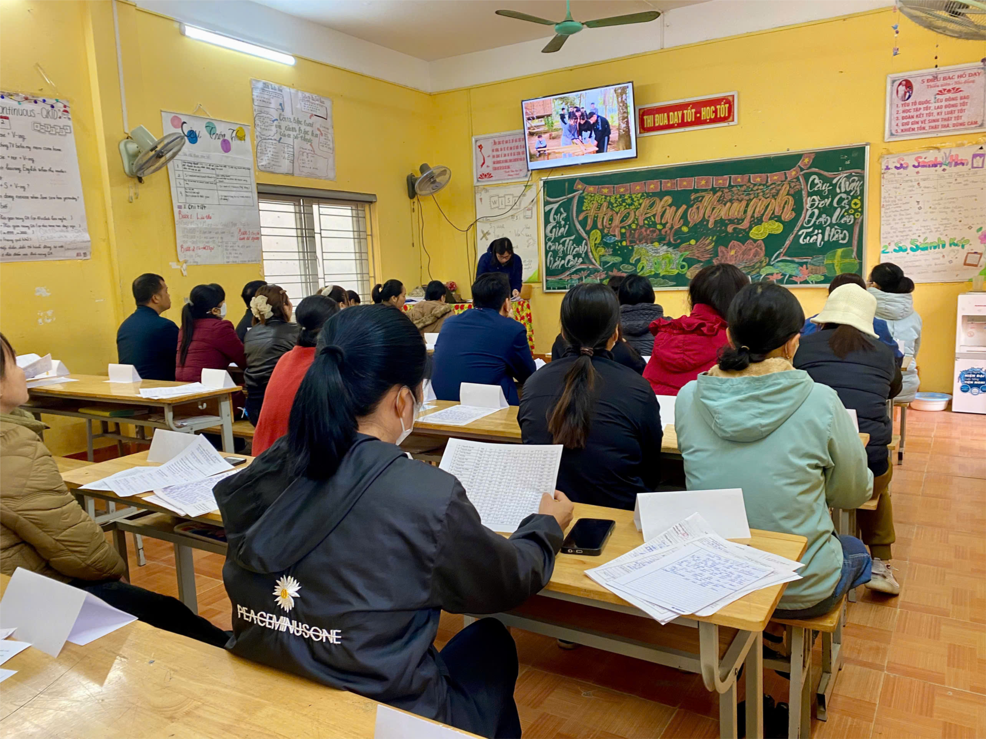 Tại buổi họp, các thầy cô giáo chủ nhiệm đã thay mặt nhà trường báo cáo tóm tắt những thành tích nổi bật mà thầy và trò trường THCS Tân Viên đã đạt được trong học kỳ vừa qua.
