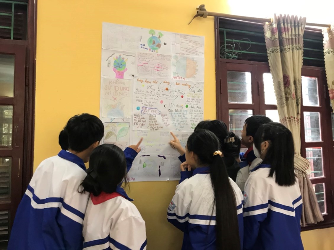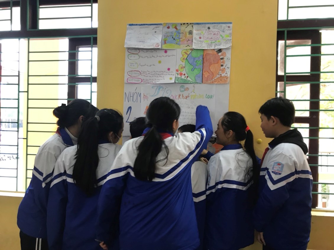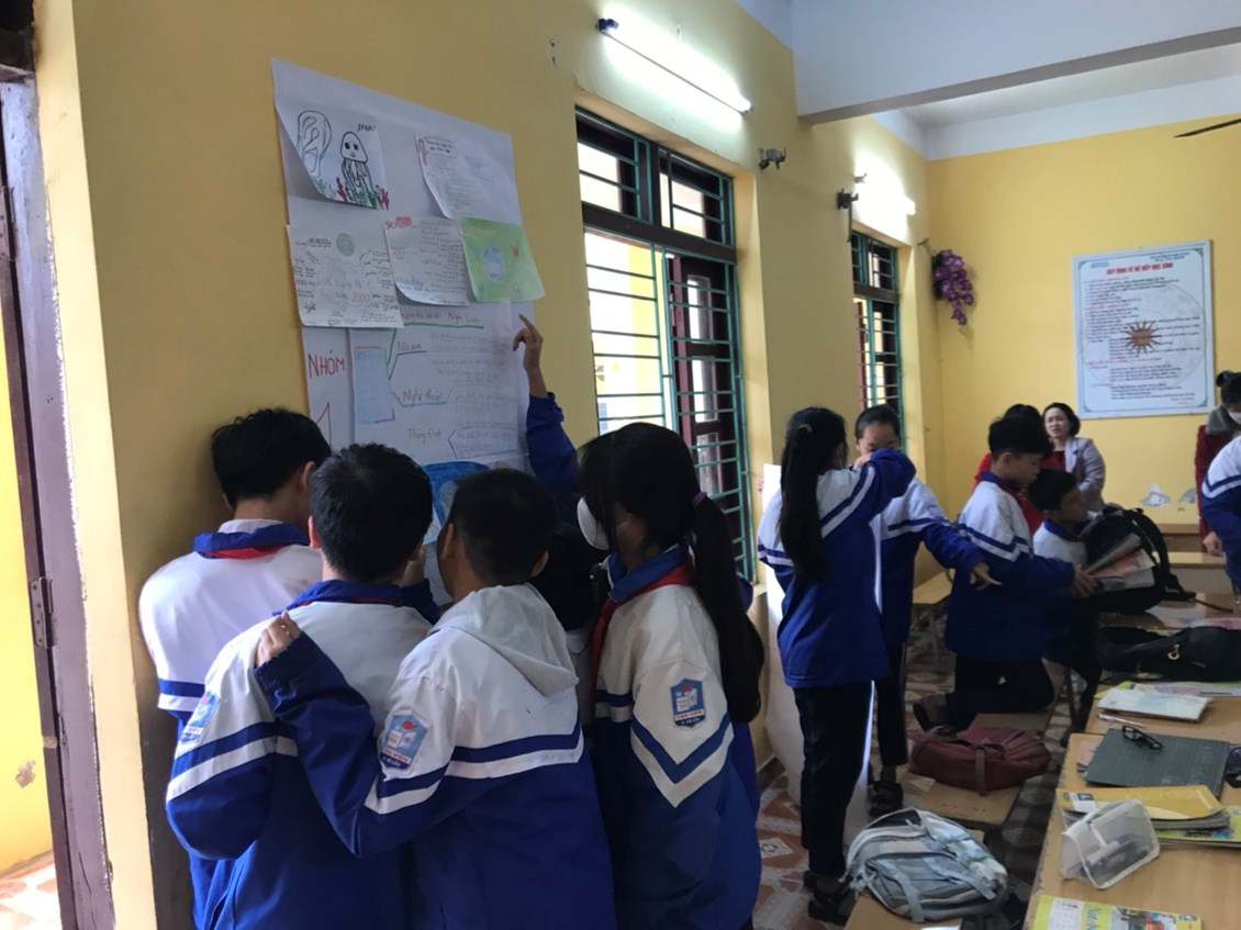 ( Giáo viên sử dụng kĩ thuật phòng tranh phát huy năng lực sáng tạo của HS, khả năng làm việc nhóm, HS được tự do tìm hiểu trong không gian lớp học, tăng tính thu hút của tiết học)