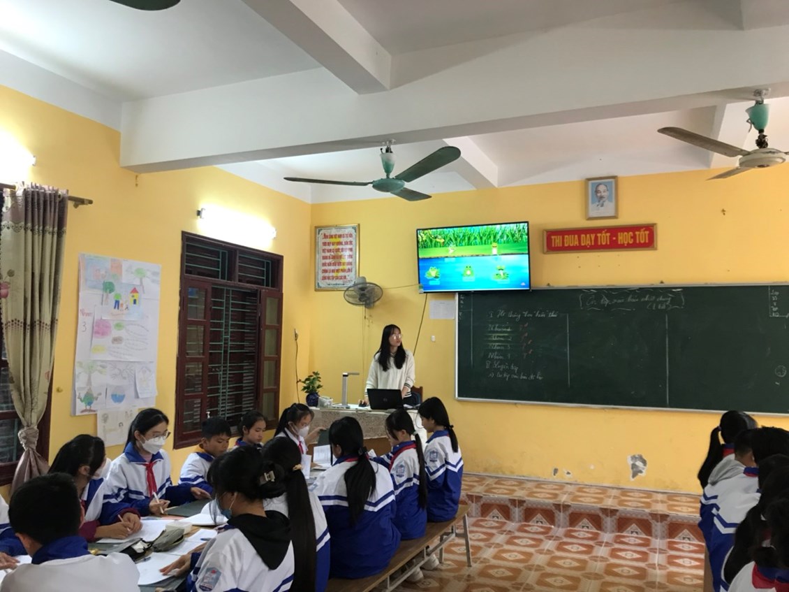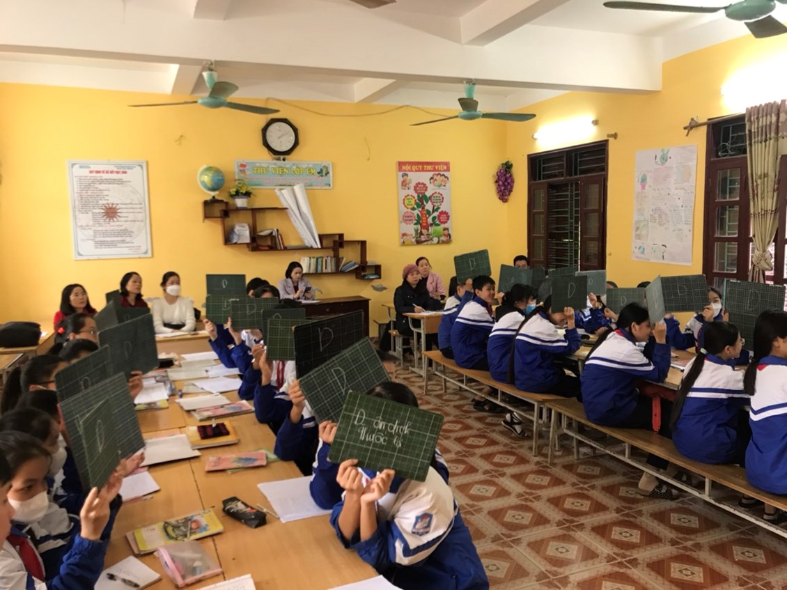 Trong 45 phút học tập, các em học sinh được trải qu nhiều hoạt động bổ ích với những phương pháp dạy học hiện đại, thu hút sự tham gia tích cực của học sinh, kết hợp việc ứng dụng CNTT khiến tiết học trở nên vui vẻ, sôi nổi, phát huy năng lực, phẩm chất của học sinh