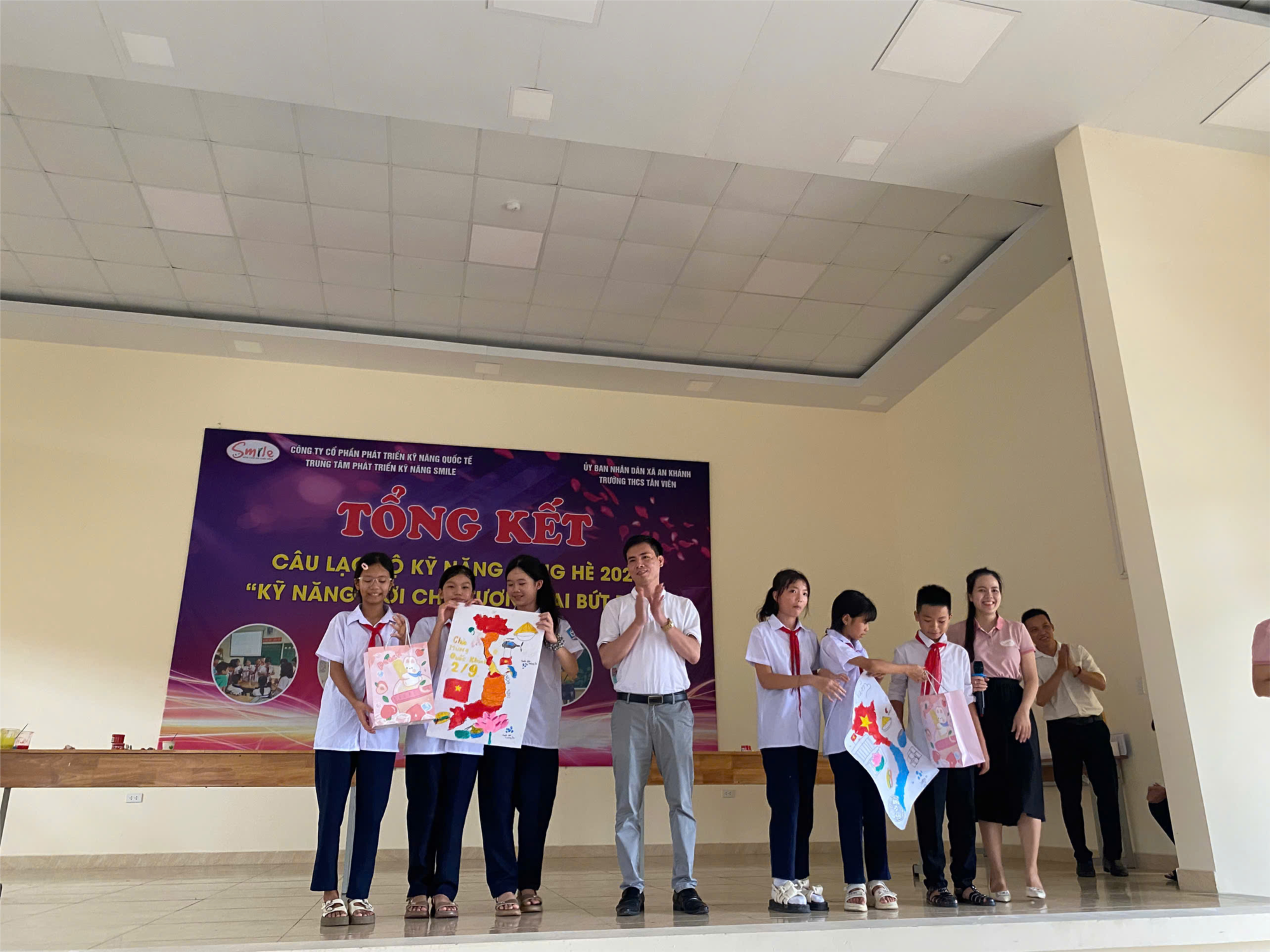 Sáng ngày 26/8/2025, tại trường THCS Tân Viên, chương trình Tổng kết Câu lạc bộ Kĩ năng sống hè dành cho học sinh khối 6,7 đã diễn ra sôi nổi, bổ ích và đầy ắp tiếng cười. Hoạt động do Công ty Cổ phần Phát triển Kĩ năng Quốc tế phối hợp cùng nhà trường tổ chức.