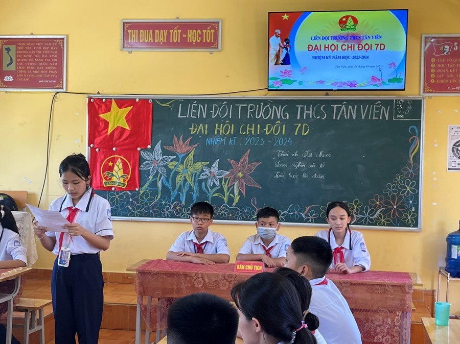 🍀🍀🍀 Đại hội diễn ra trong không khí trang nghiêm theo đúng điều lệ, nghi thức Đội TNTP Hồ Chí Minh. Đại hội vinh dự đón tiếp các thầy cô phụ trách các chi đội, chi đội trưởng 16 chi đội. Đại hội có 44 đại biểu được triệu tập. Tại đại hội, chi đội trưởng báo cáo tổng kết năm học 2022-2023, đề ra các phương hướng hoạt động năm học 2023-2024. Trong năm học này, đội viên chi đội 7D quyết tâm cố gắng đạt được mục tiêu lớn nhất là nâng cao chất lượng học tập. Đại hội bầu Ban chỉ huy chi đội mới gồm 05 bạn. Chúc BCH chi đội mới hoàn thành xuất sắc nhiệm vụ được giao. Đại hội cũng bầu 05 đại biểu đi dự đại hội liên đội.🌸🌸🌸