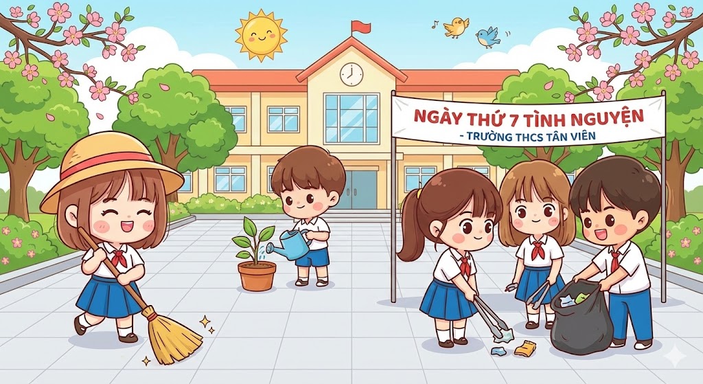 Thực hiện Kế hoạch số 05/KH-UBND ngày 06/01/2026 của Ủy ban nhân dân xã An Khánh về việc "Tổng dọn vệ sinh, khơi thông mương máng trên địa bàn xã", sáng thứ Bảy, ngày 07/02/2026, thầy và trò trường THCS Tân Viên đã sôi nổi tổ chức hoạt động "Ngày thứ 7 tình nguyện" ra quân tổng dọn vệ sinh toàn trường.
