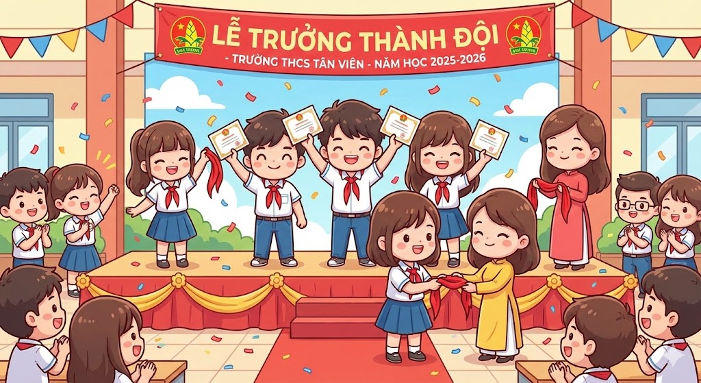 Trong không khí phấn khởi của những ngày đầu Xuân Bính Ngọ 2026 và thiết thực chào mừng kỷ niệm 96 năm Ngày thành lập Đảng Cộng sản Việt Nam (3/2/1930 - 3/2/2026); sáng ngày 02/02/2026, Liên đội trường THCS Tân Viên đã tổ chức Lễ trưởng thành Đội trang trọng và đầy xúc động cho 210 em Đội viên khối 9. Đây là sự kiện quan trọng, đánh dấu bước ngoặt trưởng thành về nhận thức và hành động của các em sau những năm tháng rèn luyện dưới lá cờ Đội.