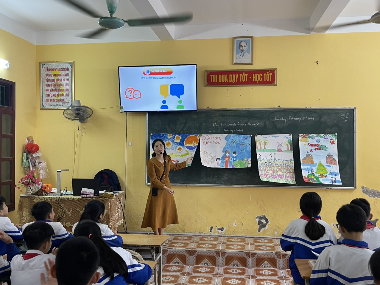 Sau khi có sự thống nhất trong tổ, nhóm tiếng Anh đã lựa chọn chủ đề Unit 9: Festivals around the world với bài học Lesson 1: Getting started và cử đồng chí Phan Thị Minh Hiếu dạy thể nghiệm tại lớp 7D vào ngày 20/2/2024. Tiết dạy trên có sự tham dự của đồng chí Vũ Văn Hùng - Phó Hiệu trưởng nhà trường cùng toàn thể các thày cô trong tổ KHXH.